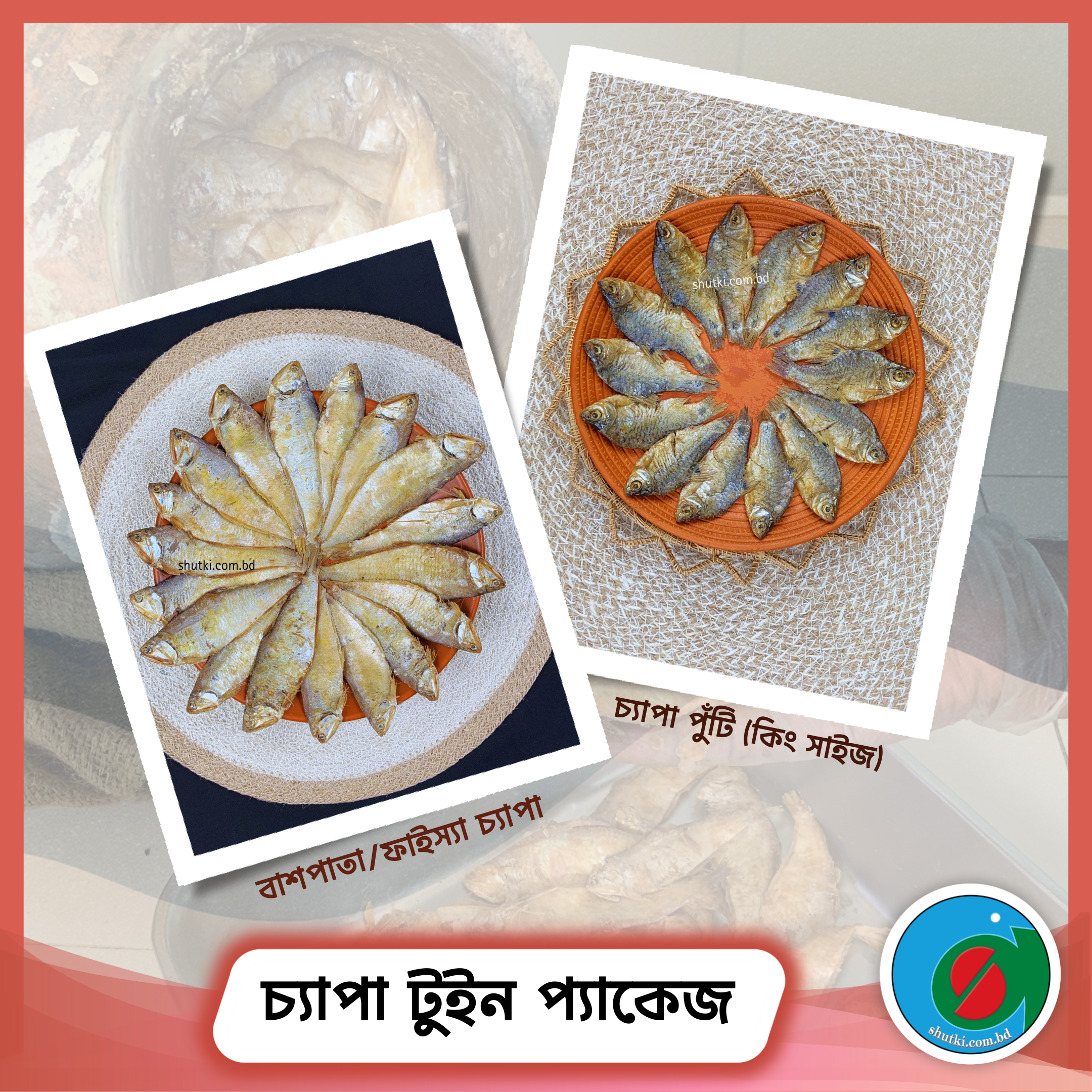 যারা চ্যাপা শুঁটকি পছন্দ করেন তাদের জন্য এই দুইটি বেষ্ট চ্যাপা একসাথে পাচ্ছেন চ্যাপা টুইন প্যাকেজে।